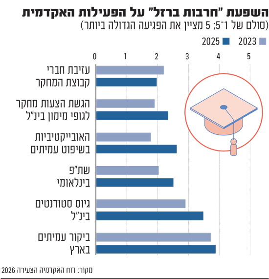 נתוני הסקר, שהגיעו לידי גלובס, מציירים מצב עגום. המשתתפים דיווחו על מצב רעוע ברמה הרגשית והכלכלית, ועל פגיעה מתמשכת בהשקעות במדע ובשיתופי פעולה בינלאומיים. גם התפוקה המדעית ירדה, וזאת עוד לפני שהמאמרים שלהם נשפטים בידי עמיתיהם בעולם באופן שנראה מפלה. מספר השוקלים עזיבה נמצא בעלייה.