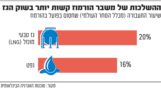 בעוד שמדובר בטלטלה קשה עבור שוק הנפט העולמי, היא דווקא הפחות חמורה בעיניו: "בגז הטבעי האירוע הרבה יותר משמעותי: ב־2025 הייצור העולמי של גז טבעי מונזל (LNG) עמד על 380 מיליון טונות, מתוכם כ־77 מיליון טונות שמייצרת קטאר ושש טונות שמייצרת איחוד האמירויות, שכולם חסומים לגמרי. זאת אומרת, כ־20% מייצור ה־LNG תקוע מאחורי הורמוז".