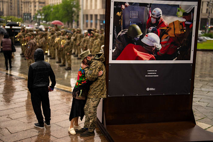 "אנחנו חיים עם מזוודות ארוזות", אמרה בת ה-48 כשהייתה בפארק עם בנה ונהנתה מהפסקה נדירה מההתרעות המתמידות של התקפות אוויר, שנשמעות כעת עד 16 שעות ביממה.